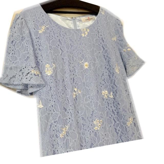 ギャラリービスコンティ Gallery Visconti ワンピース 膝丈 半袖 刺繍 レース 花柄 フラワー リボン 水色 ライトブルー オフホワイト コットン 2 レディース 121 ベクトルパーク